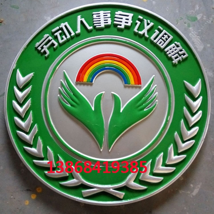 | 安裝方式 | 勞動(dòng)人事?tīng)?zhēng)議調(diào)解徽-小徽章背面都配有穿掛耳孔,釘子釘在墻上,再用穿鐵絲鋼絲,適合安裝在辦公室/會(huì)議室會(huì)場(chǎng)等。大徽后面為膨脹螺絲孔,安裝需要定做鐵架,鐵架固定墻面上后,再將徽章固定在鐵架上。玻璃幕墻也是需要鐵架方式安裝。 |